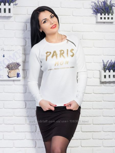 Стильная кофточка с надписями. На спинке вставлен замок. Рукав 34. 195 грн