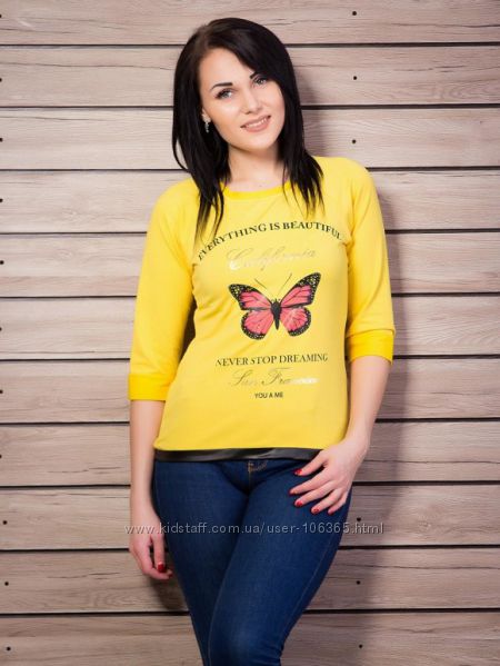 МОДЕЛЬ №1348. Стильная кофточка с передом из кожзаменителя. Украшена замком Материалы: трикотаж, кожзаменитель. цена 215 грн