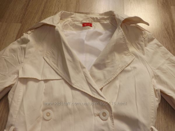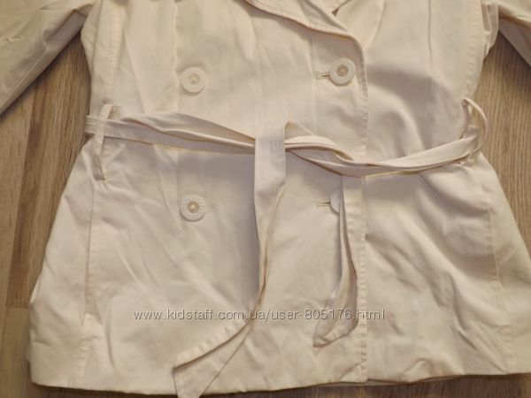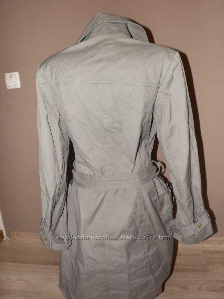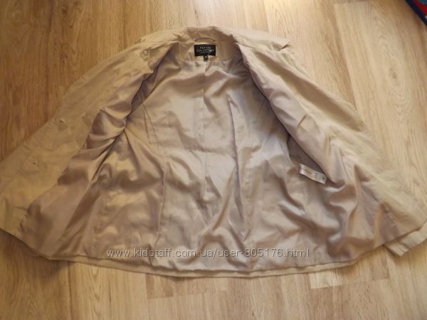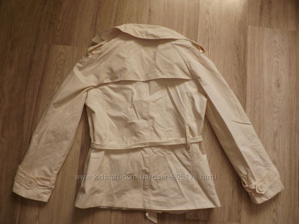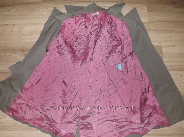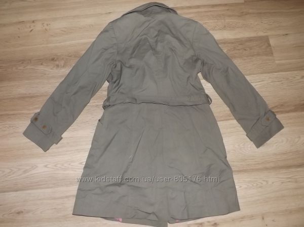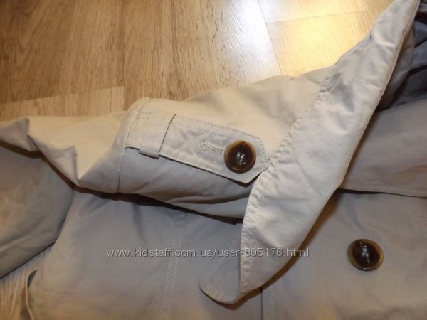 Стан плаща хороший, окрім,як є декілька пятен. При носці в очі не кидається. Виводити не пробувала. Плащ застібається на гудзички, і завязується пояском. Розмір пише L, орієнтуйтесь по замірах. Привезено з Англії. Склад: 65% cotton, 35% PL.