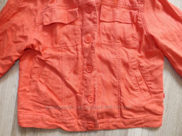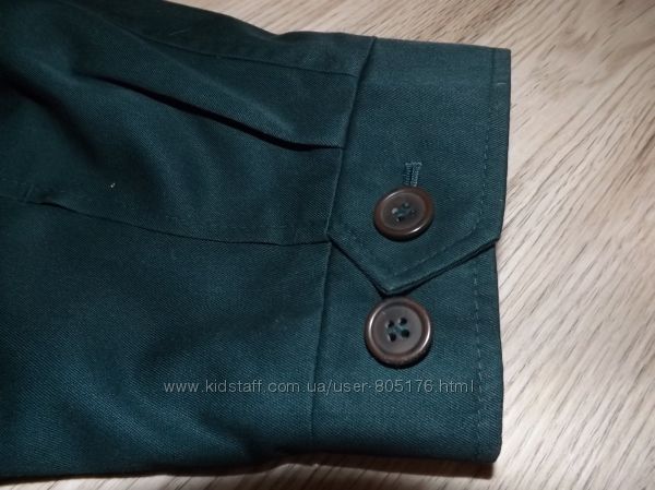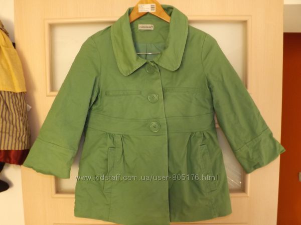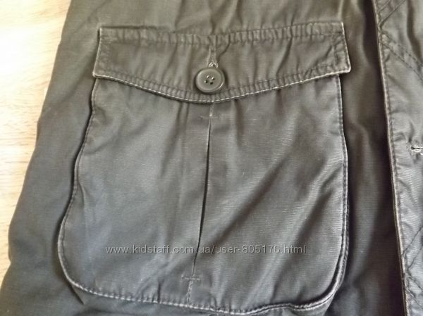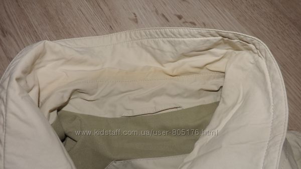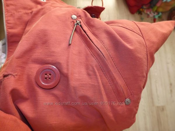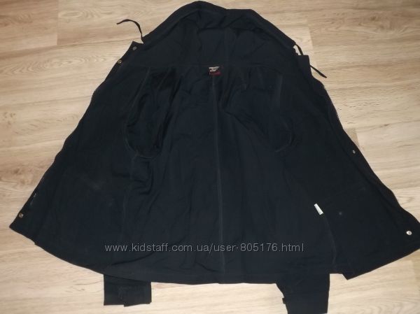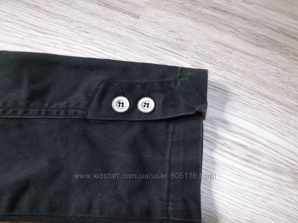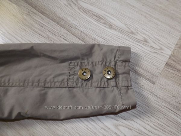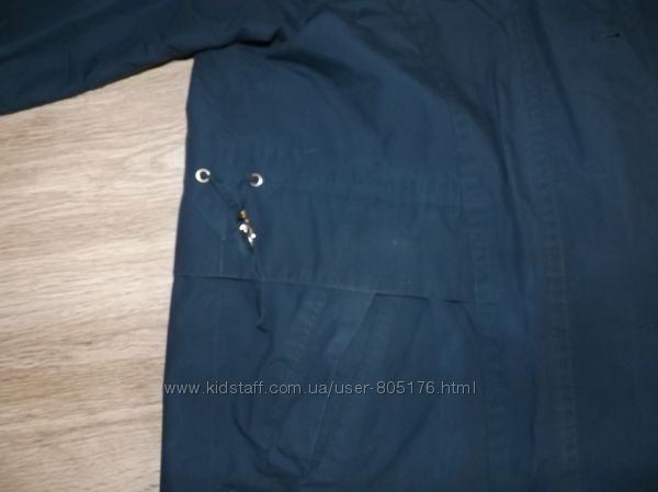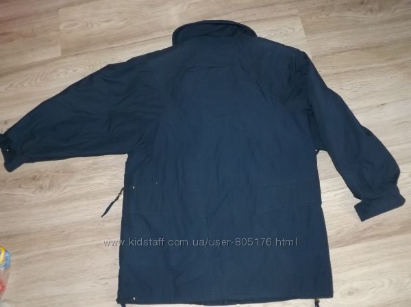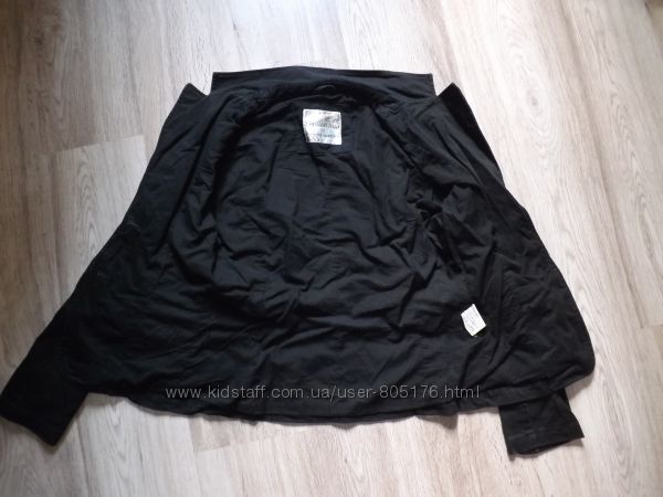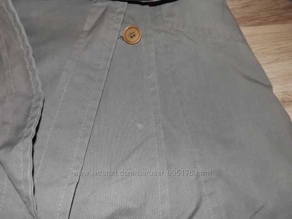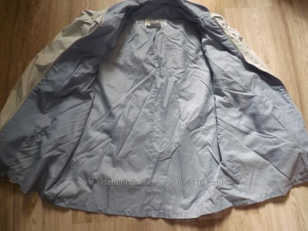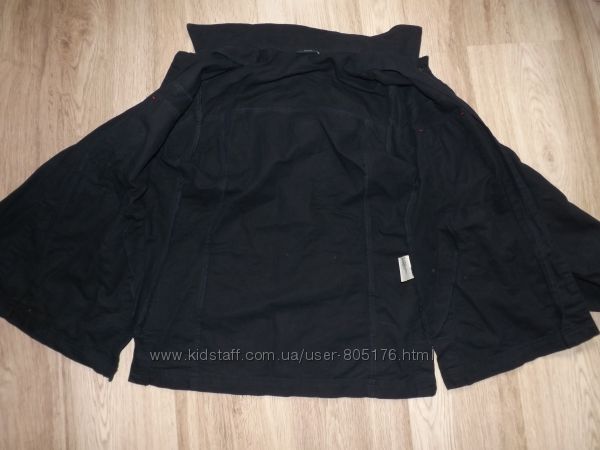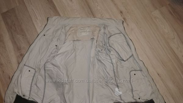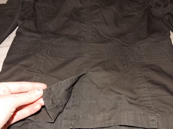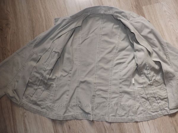 Стан хороший. Застібається на гудзики, які ховаються. Є два робочих кармани. Трішки утеплений. Підійде на холодну осінь.Ззаді і по бокам, є розпірки. Склад:55 % baumwole, 45%polyester. Виробник Корея