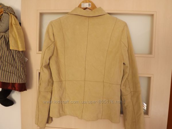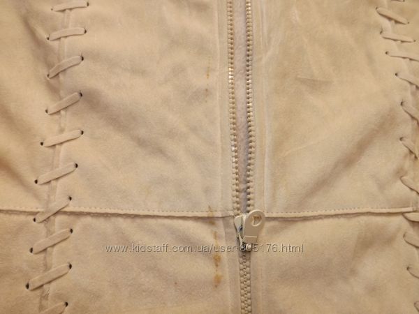 Верх на дотик,подібний до замши, мякенький, середина фліс. Розмір М. 100% poliester. Стан дуже хороший.Колір-бєж. Спереді були пятнишки, витерлись, ледь їх видно. Якщо простірнуться, то не буде видно взагалі. Привезено з Європи.