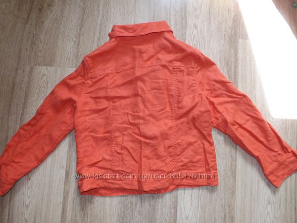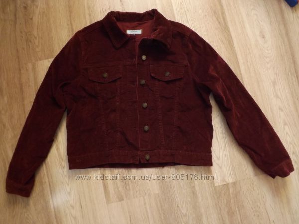 Піджачок вільвєтовий. Пише розмір 16. Приблизно наш L. 98% cotton, 2% elastan. Стан хороший, тільки на воротніку, де згин, трішки втратився колір (не дуже видно), і потрібно прошити трішки низ, розійшлась нитка. Колір бордовий.
