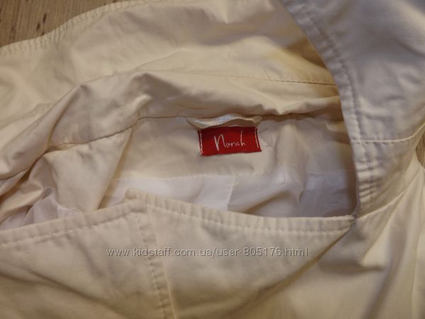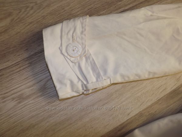 Пише розмір 40, або 14. Орієнтуйтесь по замірах. Склад 100% cotton. Стан хороший, може трішки втрачено колір, не дуже замітно. На рукавах є замочки, завдяки яким, можна збільшити ширину рукава. А також ззаді є поясок, яким можна регулювати ширину в талії.