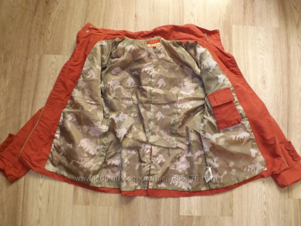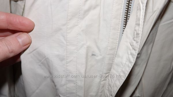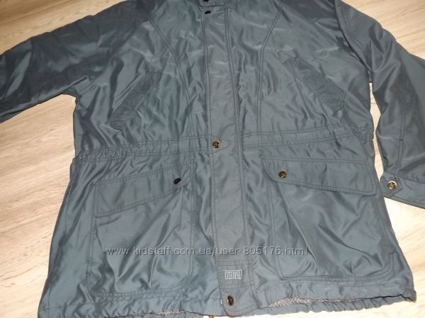 Стан курточки хороший, дефектів не бачу. Привезено з Італії. Застібається на замок і кнопочки (зроблені у вигляді компаса).На поясі є шнурівка, якою можна регулювати ширину. Такі-ж шнурівки є внизу курточки. Розмір пише 56. Орієнтуйтесь по замірах.