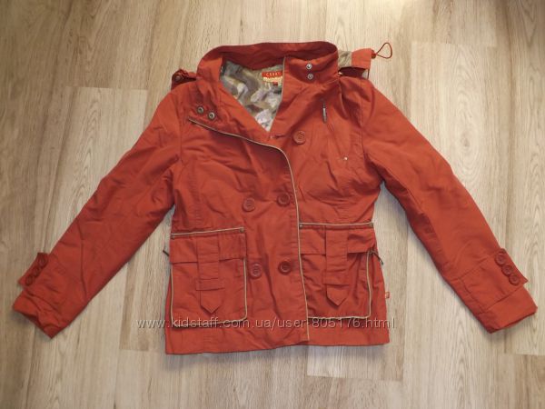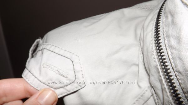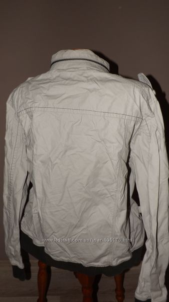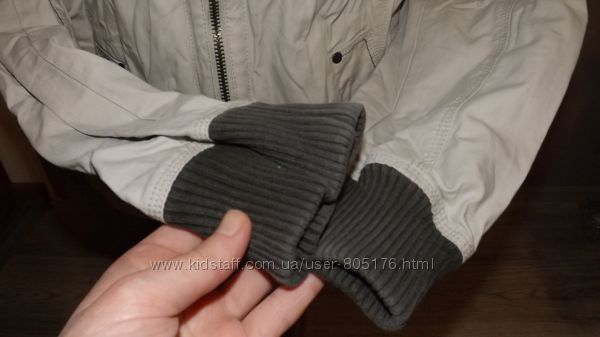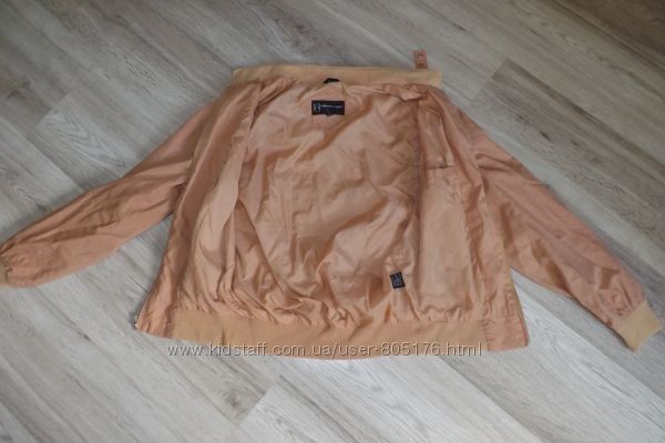 Курточка на не дуже холодну погоду.В середині є тонка підкладка. Привезено з Європи. На курточкі втрачений колір, трохи затерті рукави, розходиться замок. Пише розмір 38. Орієнтуйтесь по замірах. Склад:65% polyester, 36% cotton. Виробник Корея.