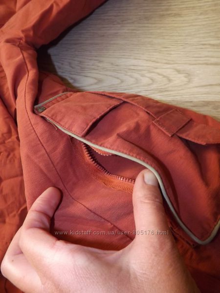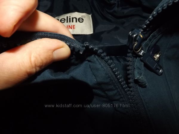 Капішон відстібується. В середині трішки по швах,розтянулась підкладка.Склад тканини, не вказано.