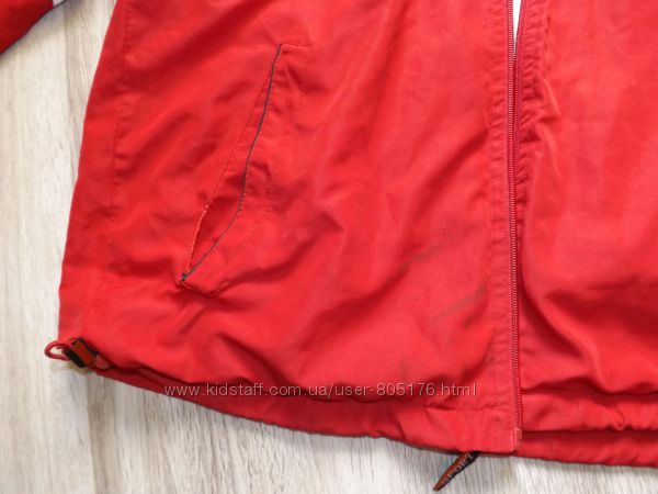 Курточка в хорошому стані. Але є дефекти: Ззаді збоку є чорні пятнишки, і в середині трішки порвана підкладка (див.фото). Замок робочий. Спереді є два робочих кармани. Всі питання задавайте до покупки. Привезено з Європи.