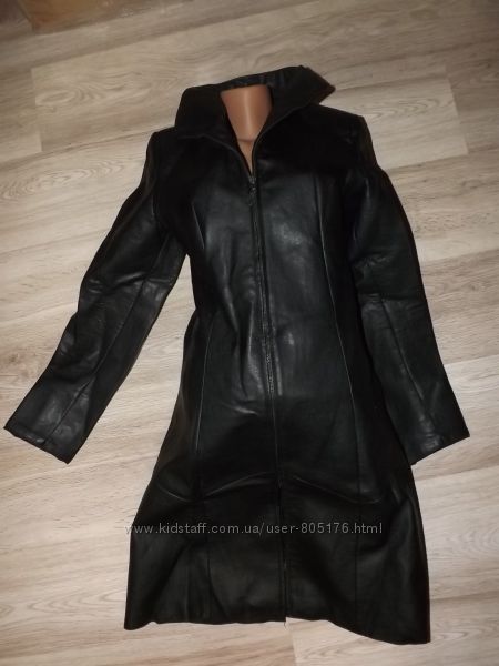 Плащ виготовлений із якісного шкір-замінника. Розмір пише 46.Див.заміри. Стан хороший. Із дефектів: в середині біля рукавів трішки розійшлась підкладка. І на замку трішки є брак, застібається добре, і не замітно. На сезон весна,осінь.