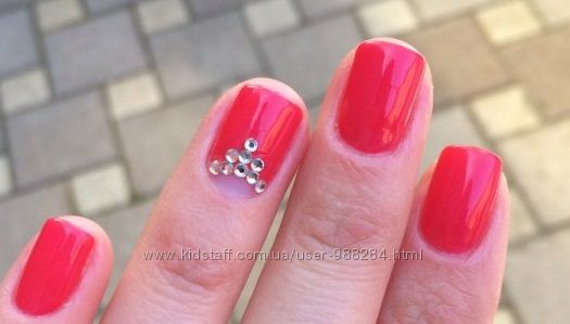 №166 Ярко розовый с перламутром в два слоя на типсе