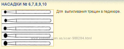 НАСАДКИ № 6,7,8,9,10 Для выпиливания трещин в педикюре.