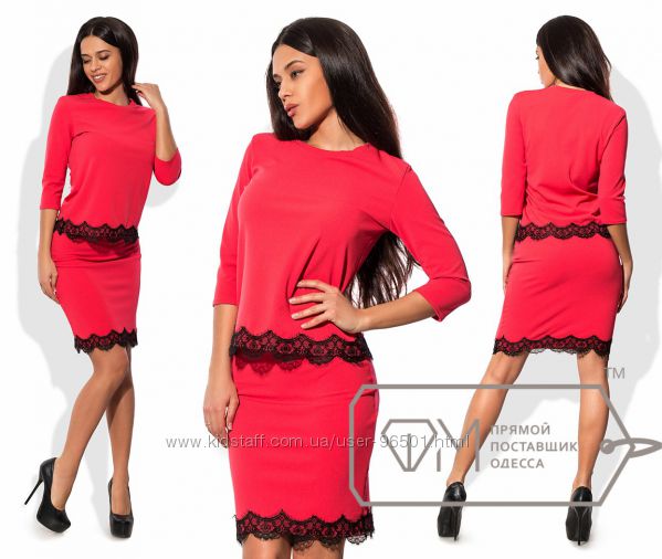 Модель № : 8408 Цена: 450 грн Размеры: S, M, L Ткань: креп-дайвинг + французское кружево Длина: верх 60 см, юбка 57 см