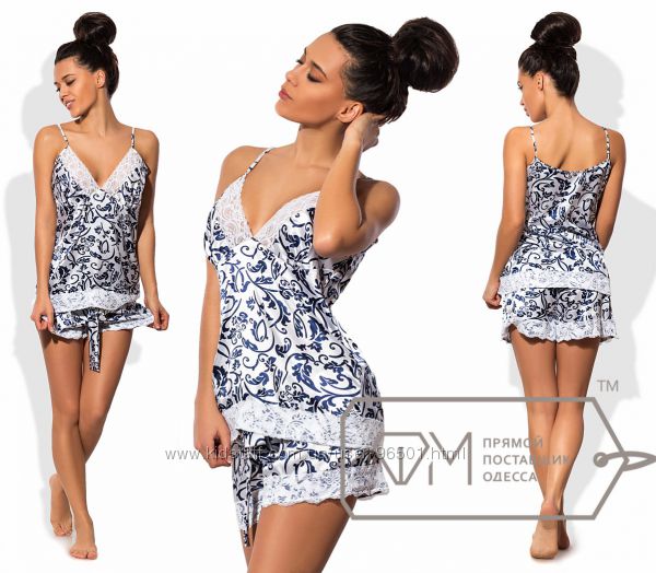 Модель № : 8423 Цена: 425 грн Размеры: S-M, M-L Ткань: вискозный атлас Длина: верх 64 см, шорты 2932 см