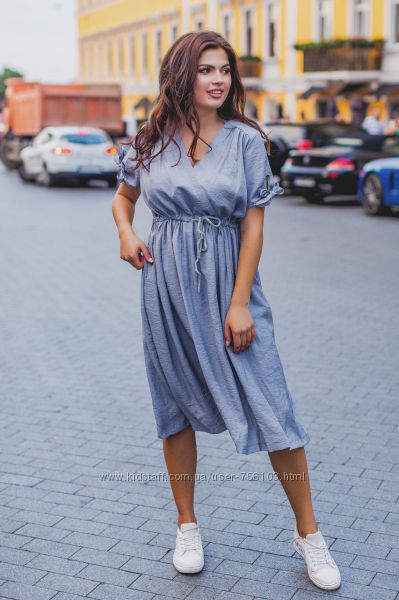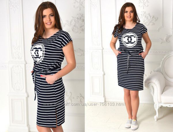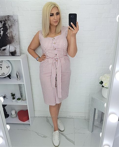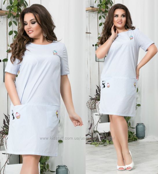 Батальное платье с карманами Размеры-50,52,54,56 Ткань-Коттон Цвет-серая полоска,голубая полоска,белая полоска В боковом шве изделия потайная змейка Пояс в комплекте Длина-50,52-113см,54-115см,56-117см