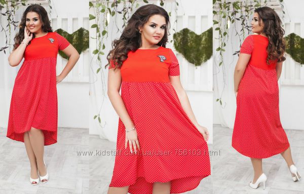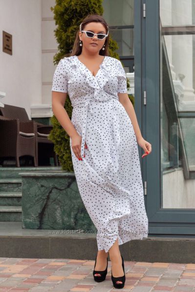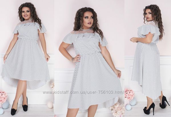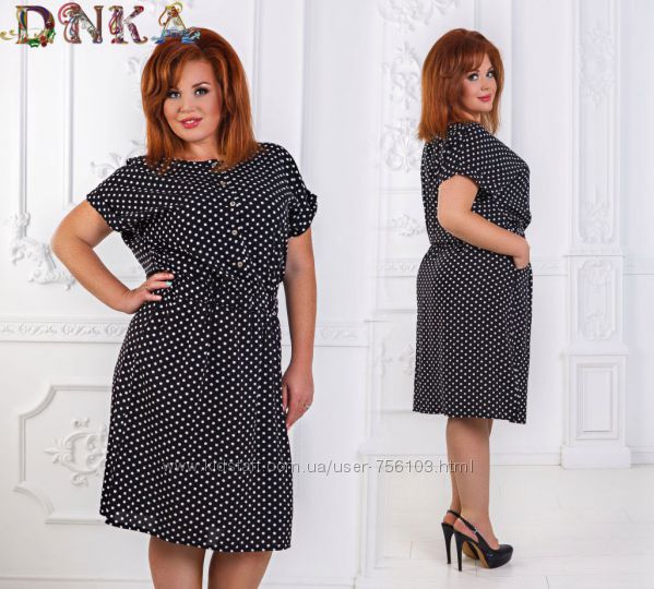 Мод 191 Размер:48-50 52-54 56-58 Ткань: горох-штапель,вставка-креп дайвинг