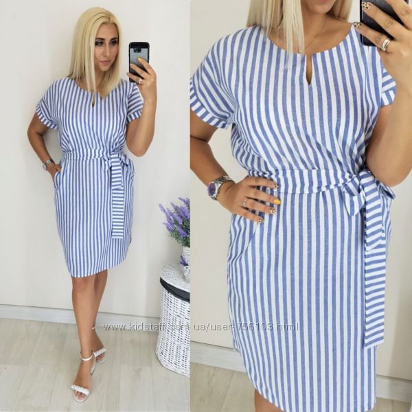 Платье полоска с карманами Размеры-42,44,46,48,50,52 Ткань-коттон Цвет-голубая полоска,серая полоска,белая полоска В боковом шве потайная змейка Пояс в комплекте Длина-42,44-94см,46-96см,48-98см,50,52-100см