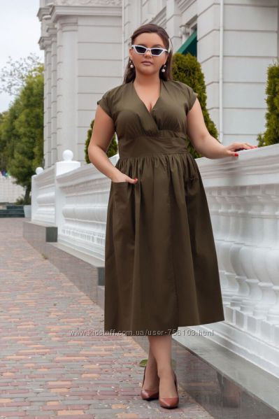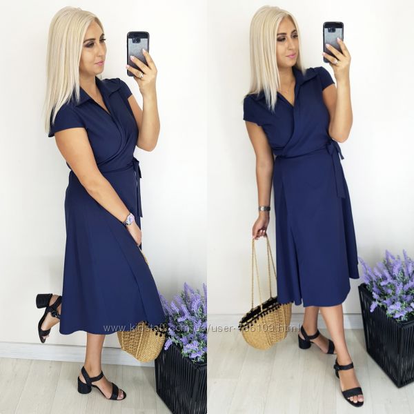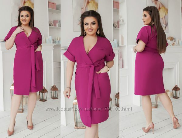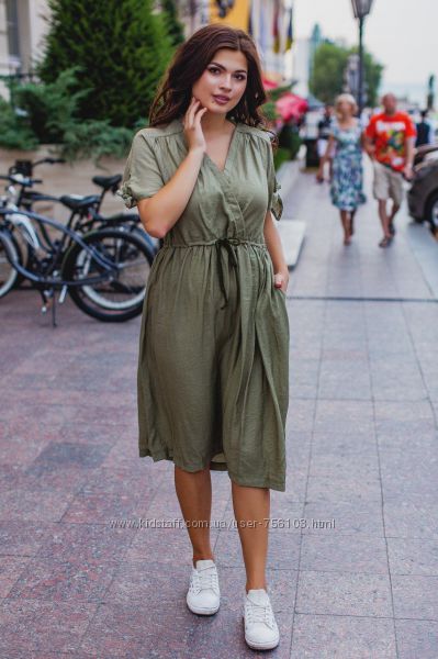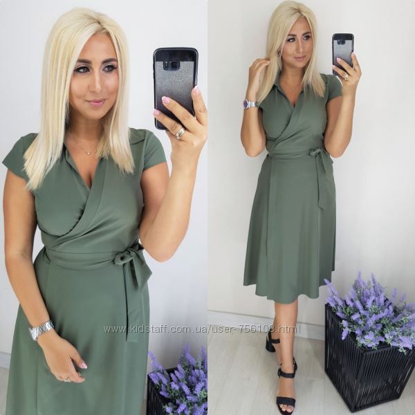 Арт 156 Платье на запах Ткань софт Цвет хаки, бордо, темно-синий Размер 52-54,56-58