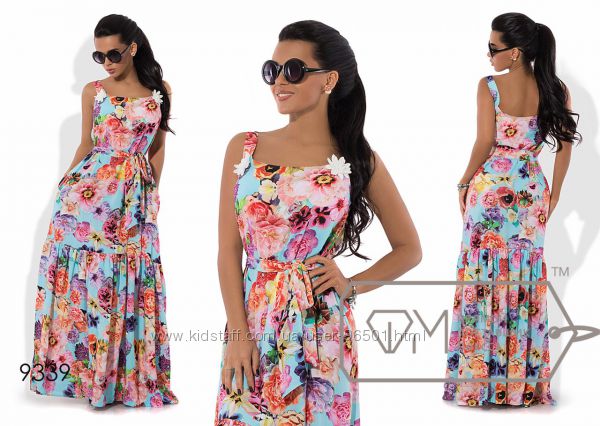 Модель № 9339 Цена: 460грн Размеры: S, М, L Ткань: штапель ( поясок в комплекте) Длина: 144см