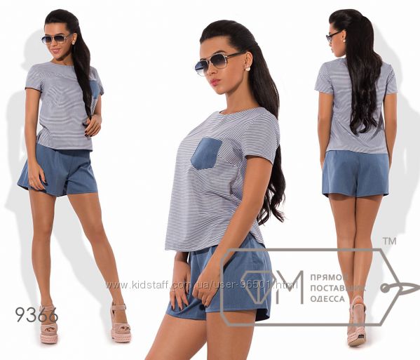 Модель № 9366 - КОСТЮМ Цена: 420грн Размеры: S, М, L, XL Ткань: блуза - коттон, шорты - летний джинс Длина блузы: 55см Длина шорт: 31см