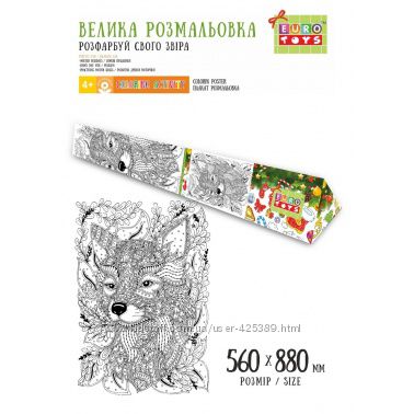 НАБОР ДЛЯ ТВОРЧЕСТВА. ПЛАКАТ-РАСКРАСКА СЕРИЯ ДИКИЕ ЖИВОТНЫЕ-ЛИСИЦА. КОД:НТ_30342 1 мм, 1+, 560х880 мм, Картон, 570х70х70 мм, 4+ 35гр