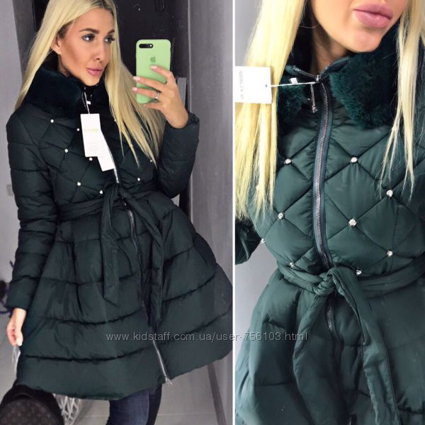 Пальто плащевка , декор мерцающие камни Евро зима, холофайбер Китай р на наш 42-44 44-46 46-48 + цвет фисташка