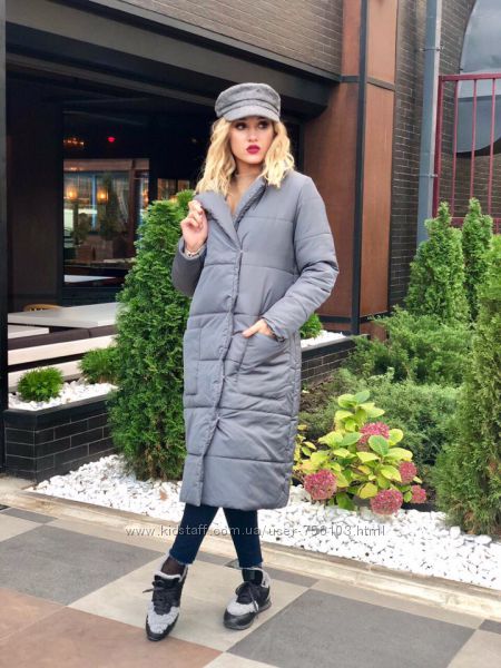 Размеры: 42,44,46,48,50,52 Ткань: плащевка Длина: 105см Длина рукава: 59см (по внешнему шву) 43см (по внутреннему шву) Наполнитель: синтепон 100