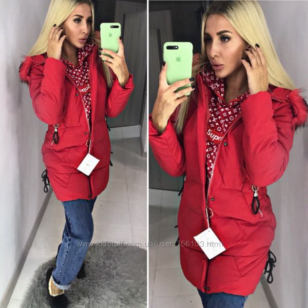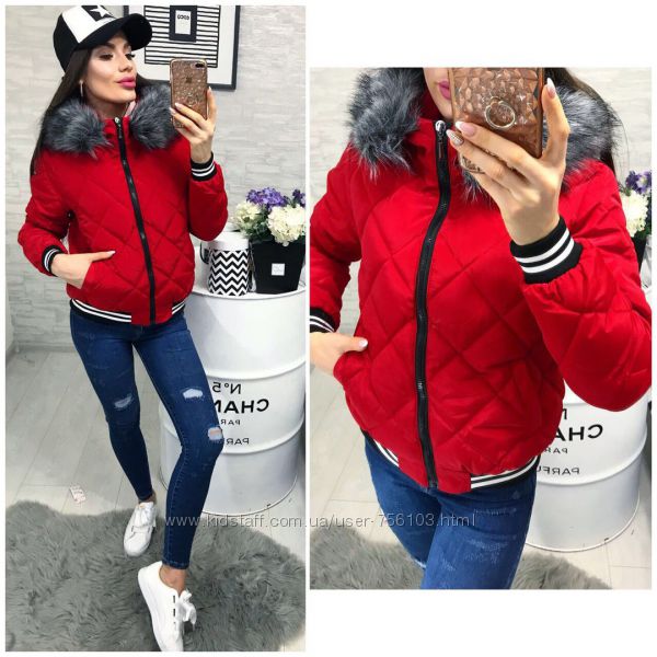 Размеры: 42,44,46 Ткань -плотная плащевка-утеплитель холофайбер-мех искусственный-очень хорошего качества Цвета-красный,черный,зеленый,розовый,синий