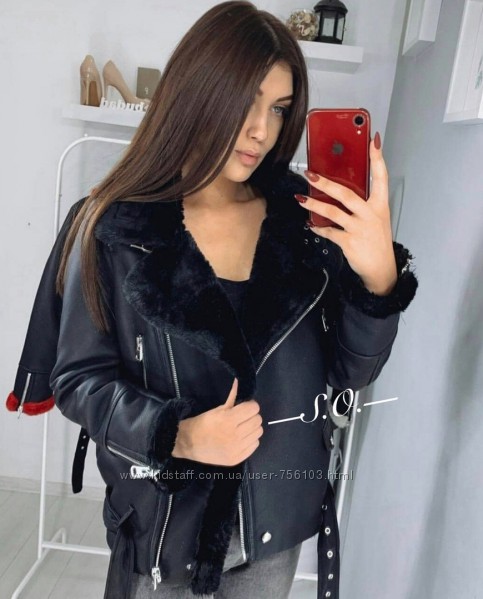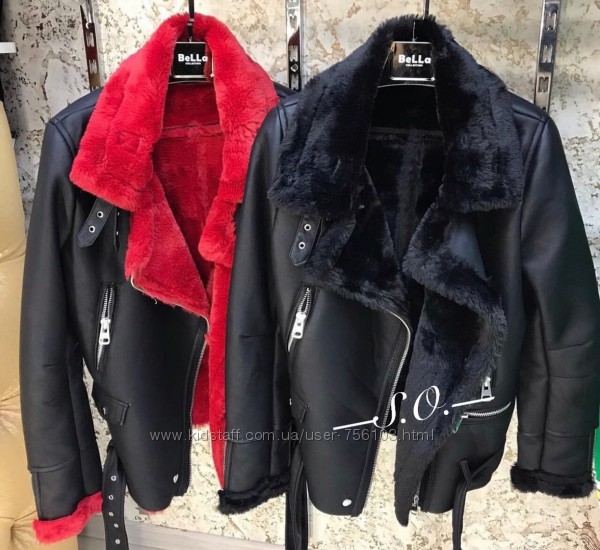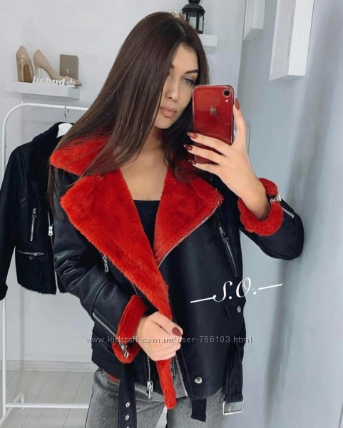 Дубленка - авиатор Стильные авиаторы на эко меху Фабричный Китай Размер S, M Ткань: эко кожа + эко мех Цвет: чёрный мех, красный мех