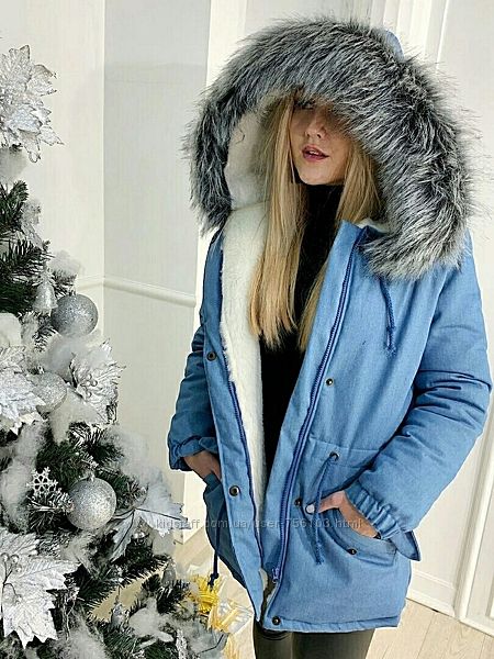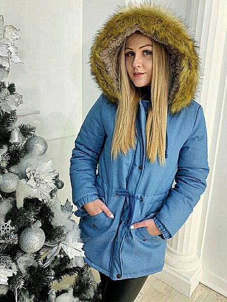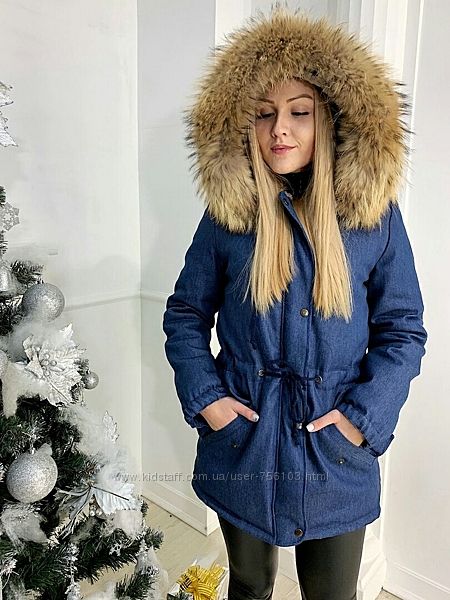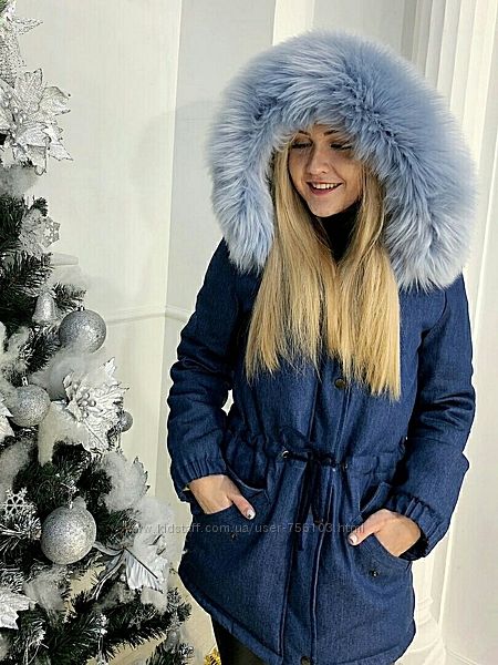 ПАРКА.ОСНОВА ДЖИНС-КОТТОН МЕХ НА КАПЮШОНЕ ИСКУССТВЕННЫЙ, ОТСТЕГИВАЮЩИЙСЯ МЕХ ПОДКЛАДКА: МЕХ ИСК. +150 СИНТЕПОН . РАЗМЕРЫ ; S 42-44. Длина-Изделия-76 см.Рукав-61см M 44-46.Длина-Изделия-77см.Рукав-62 см L 46-48. Длина-Изделия-78 см.Рукав-63 см XL 50-52.Дли