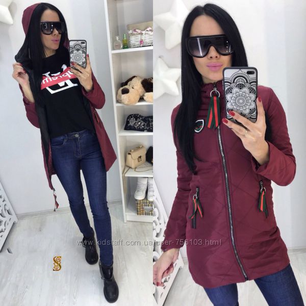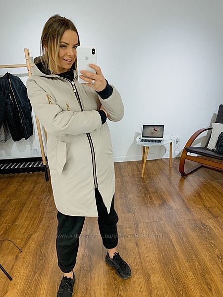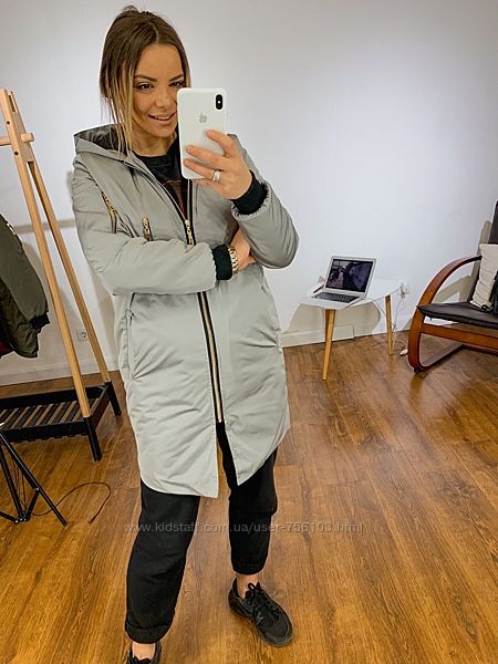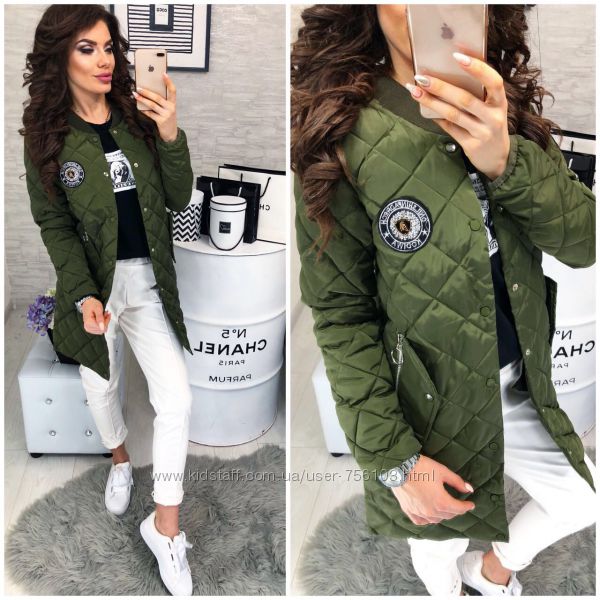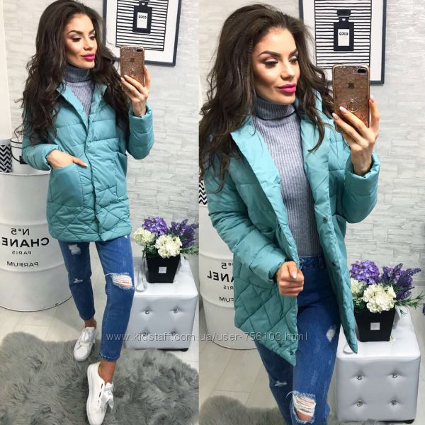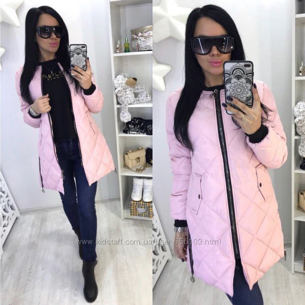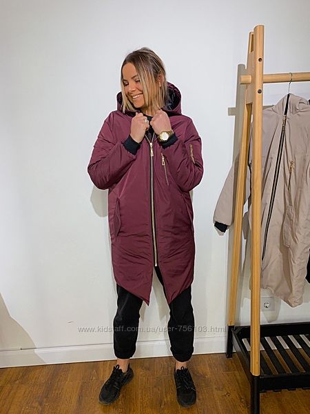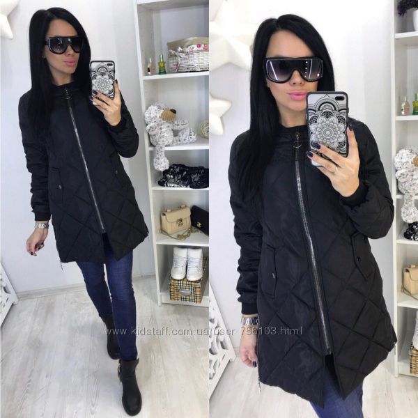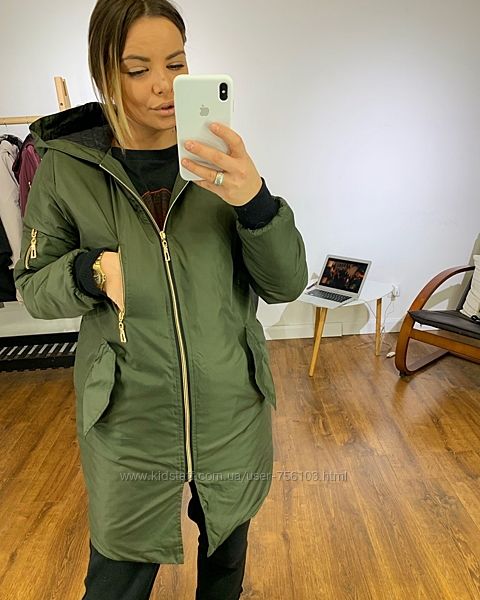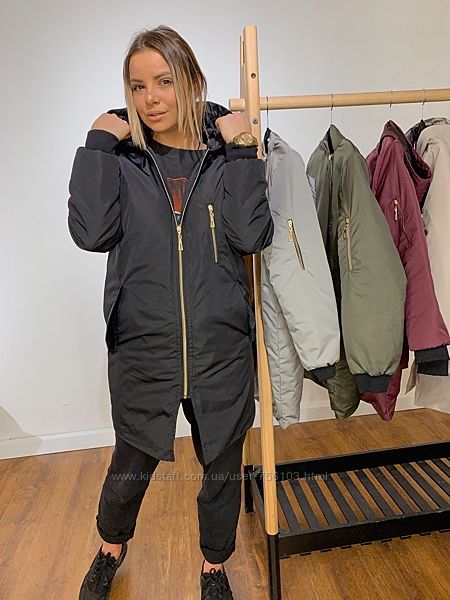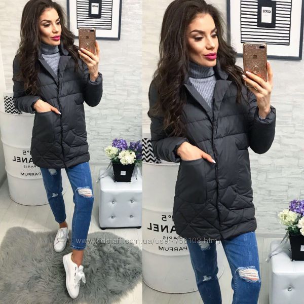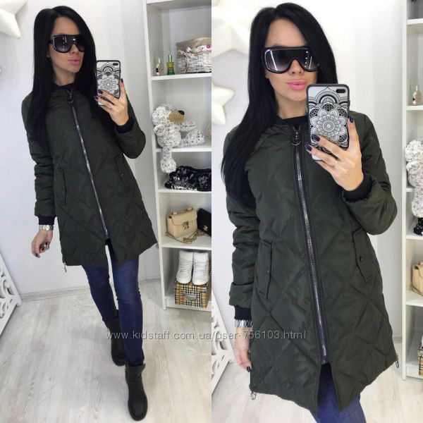 Удлиненная куртка деми плащевка+синтепон р на наш 42 44 46 48