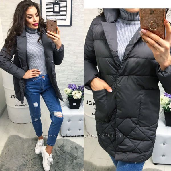 Размеры: 42,44,46 Ткань-плотная плащевка-утеплитель холофайбер-очень хорошего качества Цвета-черный,серый