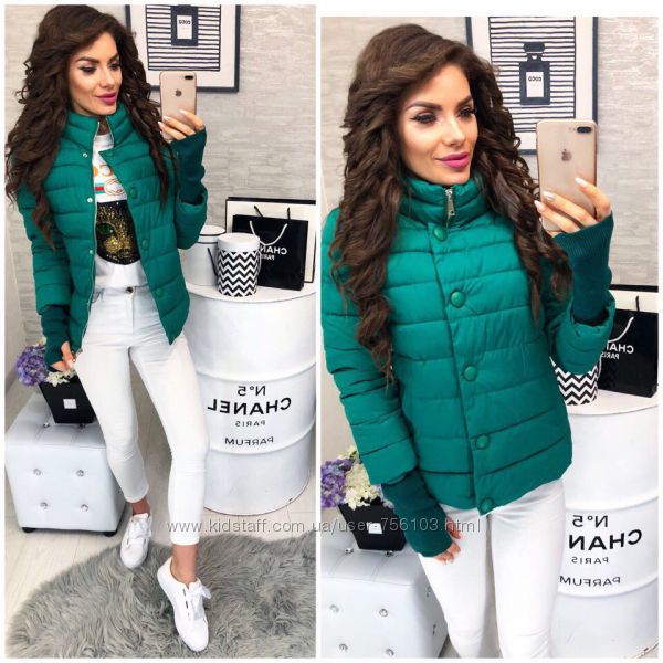 №01564 Размеры: 42,44,46 Ткань - плащевка-наполнитель холофайбер-рукава вязка Цвета-сиреневый,зеленый,черный,розовый,голубой