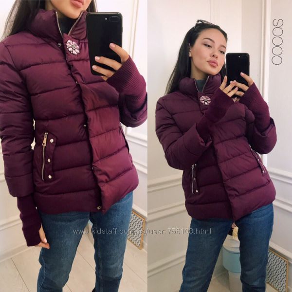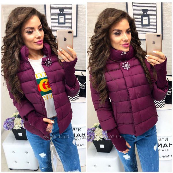 Куртка #341 Размеры: 42,44,46 Наполнитель: холофайбер, нашивки с камнями Цвет:розовый,бордо,хаки,черный,серый