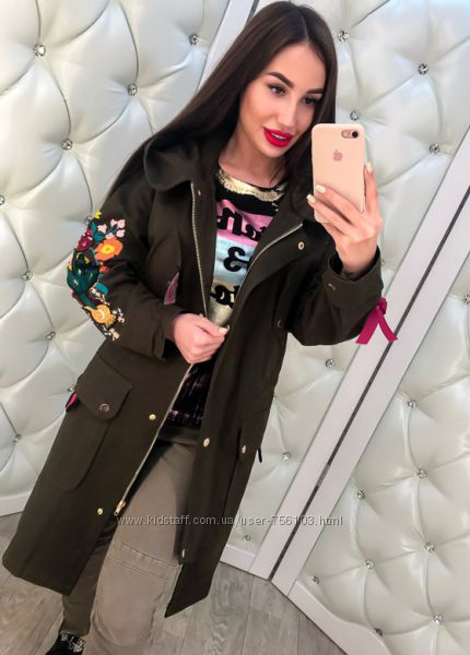 ВЕТРОВКА ПЛОТНЫЙ КОТОН И ВЫШИВКА, ДЕКОР БУСИНЫ И КАМНИ Размер свободный Цвет: ХАКИ, ЧЕРНЫЙ