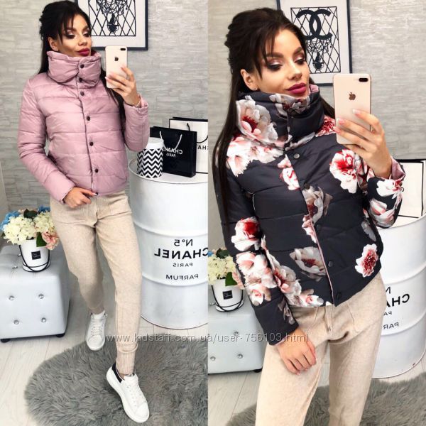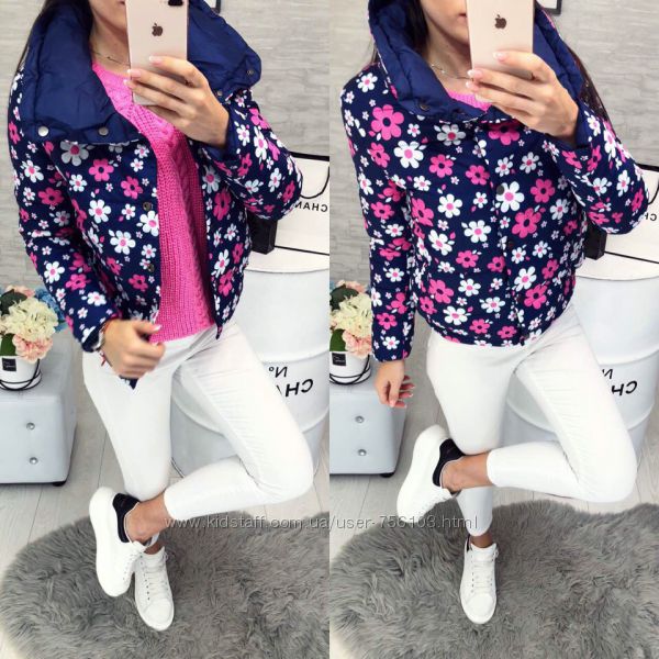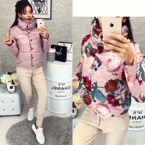 Куртка двусторонняя Размеры: Л=42, ХЛ=44, ХХЛ=46 Наполнитель: холофайбер Принт: розы с серым и с пудрой, ромашки с синим