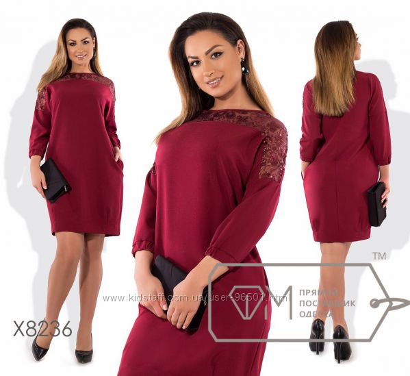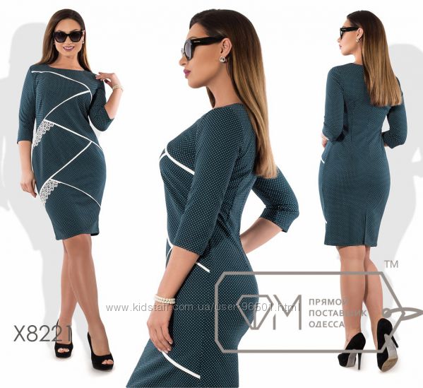 Модель № X8221 Цена: 450грн Размеры: 48, 50, 52, 54 Ткань: костюмка стрейч+кружево Длина: 98см Длина рукава: 42см