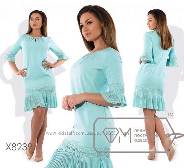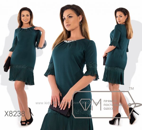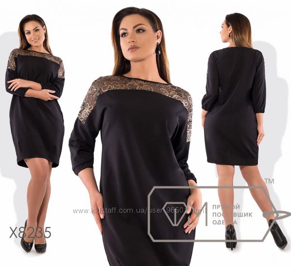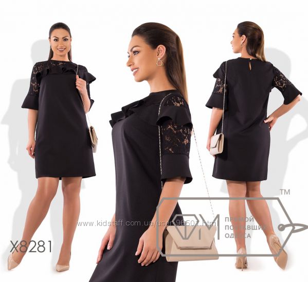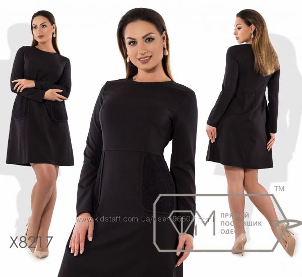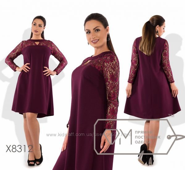 Модель № X8219 Цена: 450грн Размеры: 48, 50, 52, 54 Ткань: костюмка стрейч+кружево Длина: 98см Длина рукава: 42см