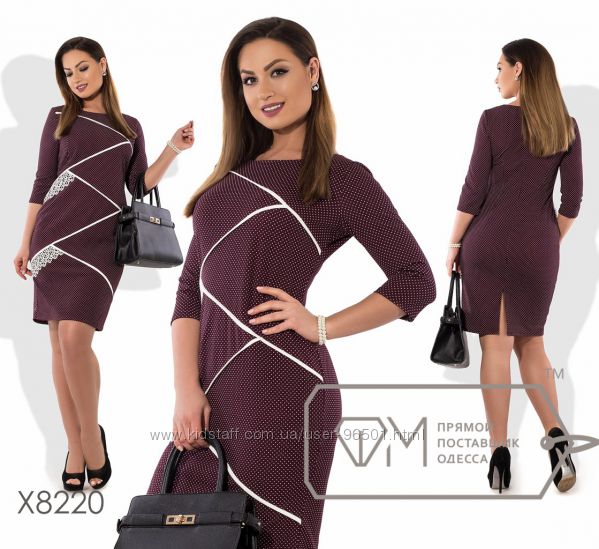 Модель № X8220 Цена: 450грн Размеры: 48, 50, 52, 54 Ткань: костюмка стрейч+кружево Длина: 98см Длина рукава: 42см