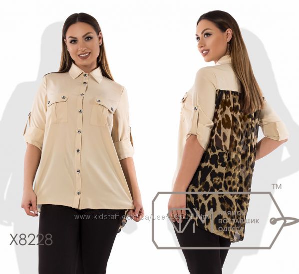 Модель № X8228 - блуза Цена: 460грн Размеры: 48, 50, 52, 54 Ткань: софт+шифон Длина: 70см/81см Длина рукава: 60см