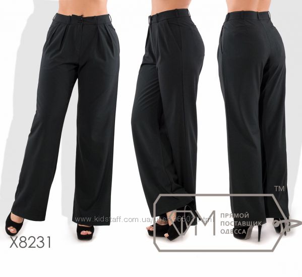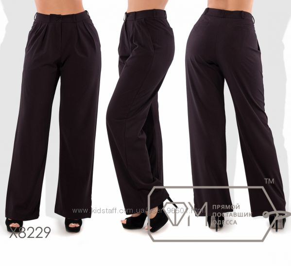 Модель № X8226 - Двойка Цена: 550грн Размеры: 48, 50, 52, 54 Ткань: кофточка - французский трикотаж, брюки - костюмка Длина кофточки: 68см Длина рукава: 42см Длина брюк: по внешнему шву - 105см, по внутреннему - 76см