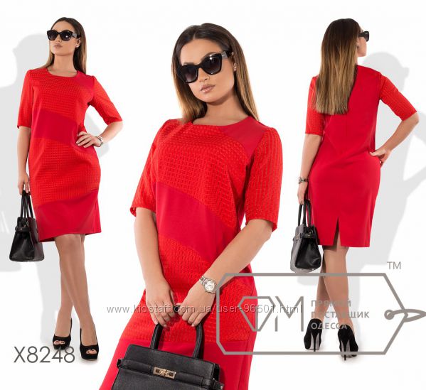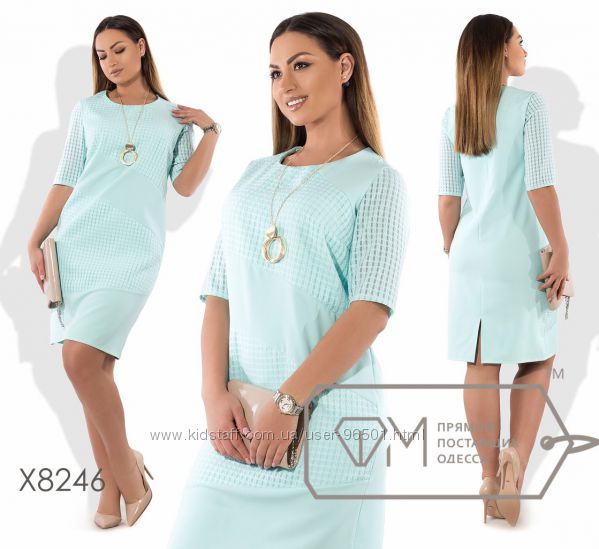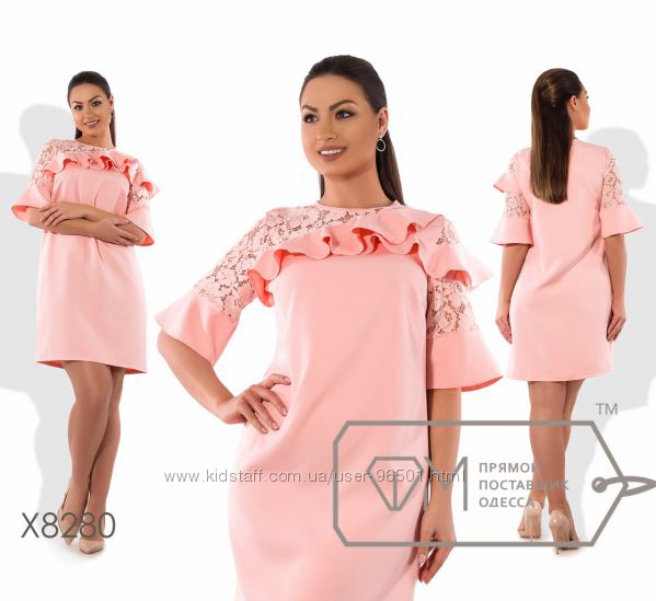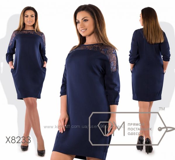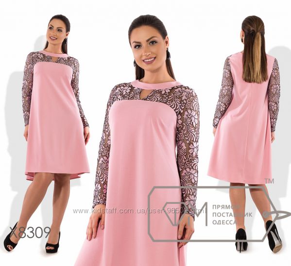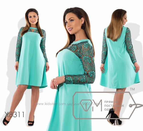 Модель № X8216 Цена: 450грн Размеры: 48, 50, 52, 54 Ткань: креп костюмка+гипюр Длина: 95см Длина рукава: 60см