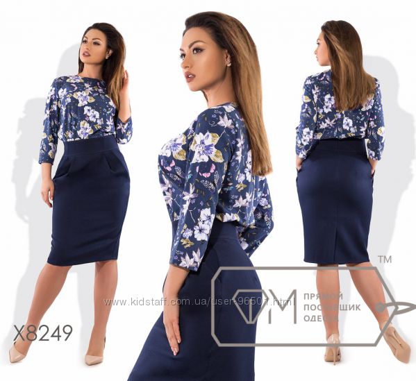 Модель № X8213 Цена: 490грн Размеры: 48, 50, 52, 54 Ткань: креп костюмка Длина: 98см Длина рукава: 50см