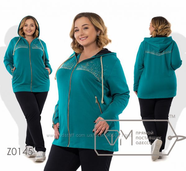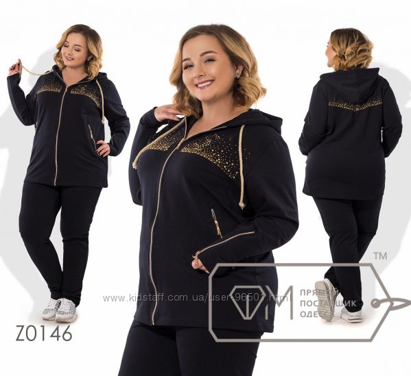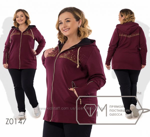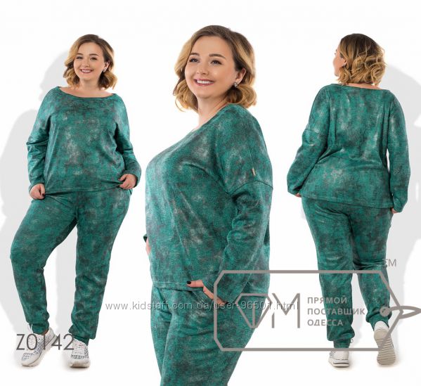 Модель № Z0099 Цена: 530грн Размеры: 56-58, 60-62 Ткань: трикотаж "Рубчик" Длина кофточки: 77см Длина рукава от горловинки: 43см Длина брюк: по внешнему шву - 108см, по внутреннему - 79см ( на резинке)