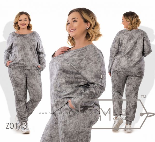 Модель № X8343 Цена: 680грн Размеры: 48, 50, 52, 54 Ткань: креп дайвинг Длина кофточки: 65см Длина рукава от горловинки: 50см Длина брюк: по внешнему шву - 102см, по внутреннему шву - 80см