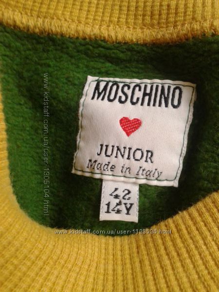 спортивна кофта.світшот MOSCHINO оригінал .вкааний вік 14р.гарний стан. довж 62.рукав 55.рукав до шиї 73.пог 58 .низ 42.плечі 45.90%хлопок 10% віскоза 65грн.