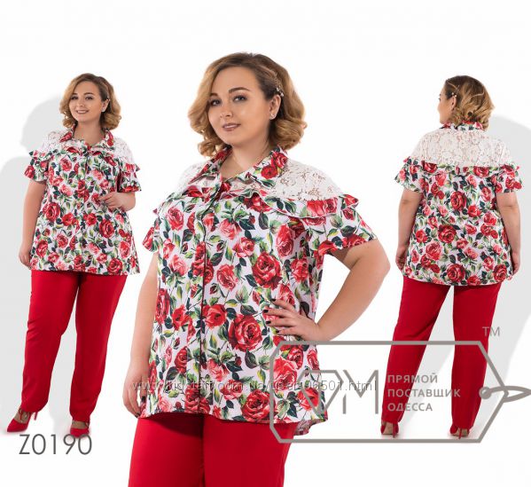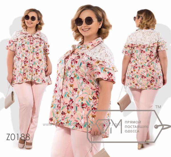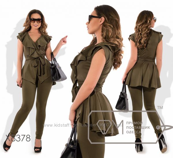 Модель № X8378 - двойка Цена: 700грн Размеры: 48, 50, 52, 54 Ткань: Алекс Длина кофточки: 77см по спинке, на запах Длина брюк: по внешнему шву - 102см, по внутреннему шву - 82см