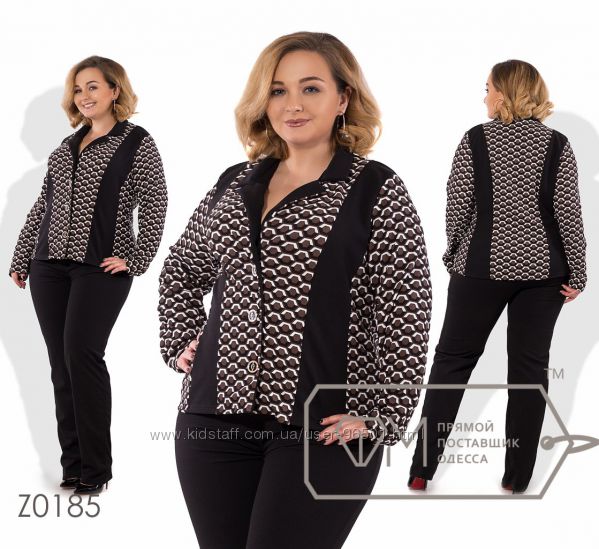 Модель № Z0185 - Двойка Цена: 720грн Размеры: 56-58, 58-60, 60-62 Ткань: пиджак - дайвинг, штаны - трикотаж "Отто" Длина пиджака: 63см Длина рукава: 62см Длина брюк: по внешнему шву - 109см, по внутреннему шву - 85см
