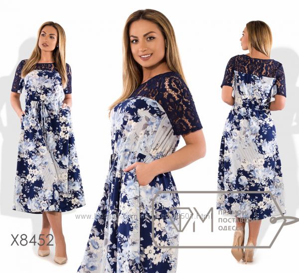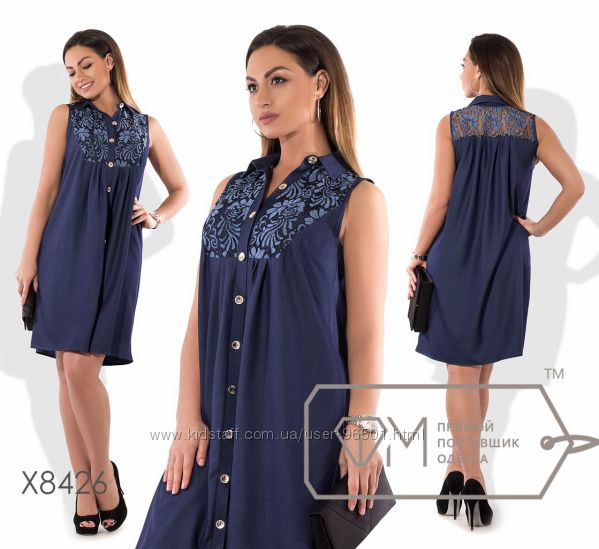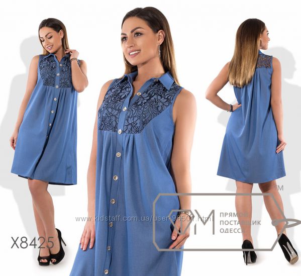 Модель № X8426 Цена: 525грн Размеры: 48, 50, 52. 54 Ткань: джинс (летний) + гипюр Длина: 95см