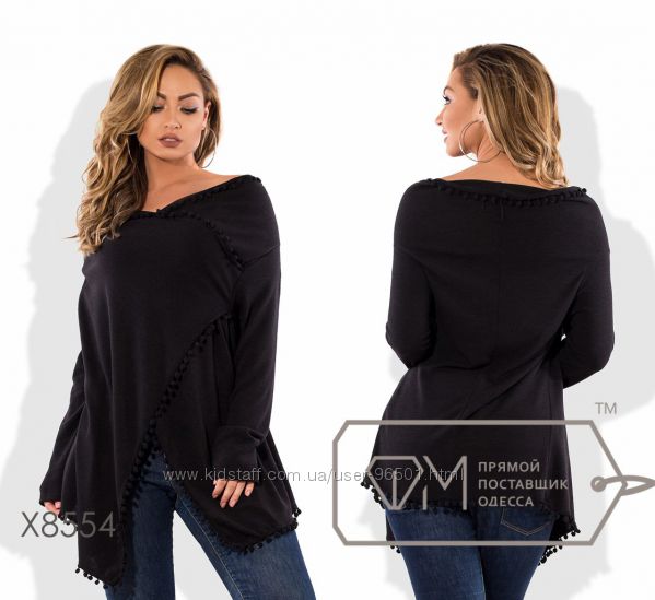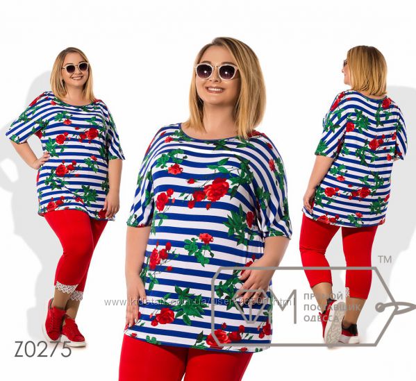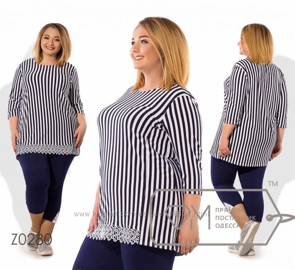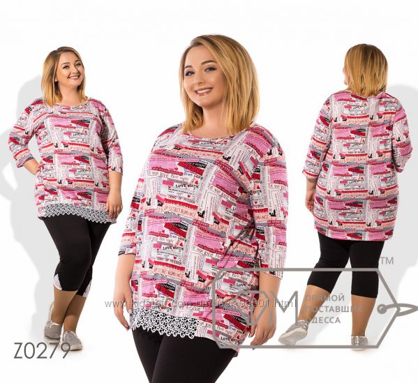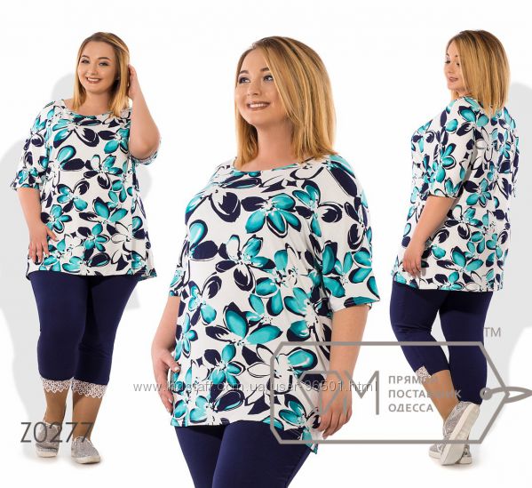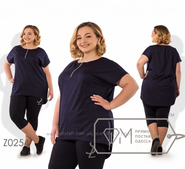 Модель № X8383 Цена: 490грн Размеры: 48, 50, 52, 54 Ткань: кофточка - фактурный трикотаж, бриджи - двухнитка Длина кофточки: 66см/76см Длина бридж: по внешнему шву - 68см, по внутреннему шву - 44см