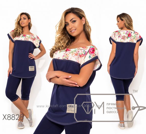 Модель № X8828 Цена: 400грн Размеры: 48, 50, 52, 54 Ткань: верх-софт, бриджи - вискоза Длина кофточка: 75см Длина бридж: по внешнему шву - 70см, по внутреннему шву - 47см