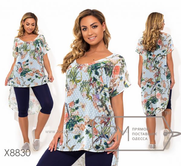 Модель № X8829 Цена: 400грн Размеры: 48, 50, 52, 54 Ткань: верх-софт, бриджи - вискоза Длина кофточка: 75см Длина бридж: по внешнему шву - 70см, по внутреннему шву - 47см